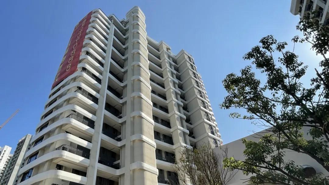 1#楼(27层)主体结构封顶完成,砌体施工完成,内外墙抹灰施工完成,幕墙施工完成95%,外墙涂料施工完成95%,内墙腻子施工完成,地面找平施工完成,外架拆除完成,塔吊拆除完成。