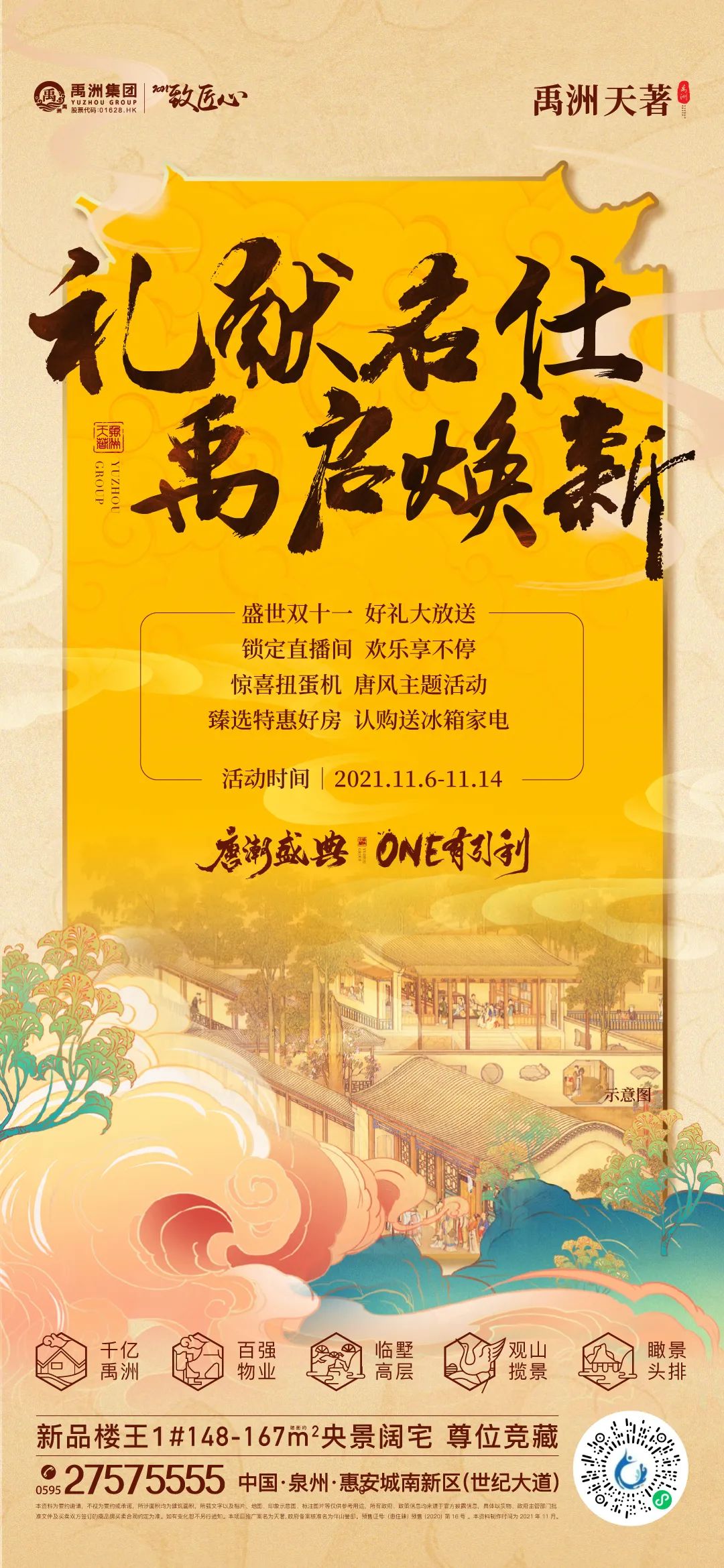 即日起至11月14日,税后0.8%佣金(①老带新:50%物业费+50%禹佳卡;②全民营销:50%现金+50%禹佳卡;)