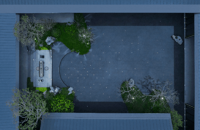将自然中的山、石、木、水框于此处
