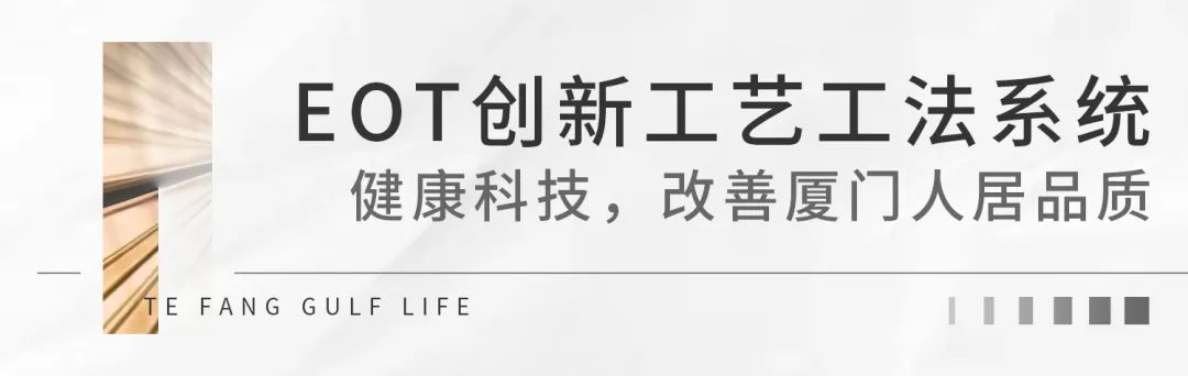 其“EOT亲生态技术”是基于BREALY高分子基材,遵循国际 WELL健康建筑标准及创新装配式工艺,以新理念、新材料、新工艺,全方位营造厦门菁英家庭所需的健康人居技术体系,让业主享受健康品质生活。