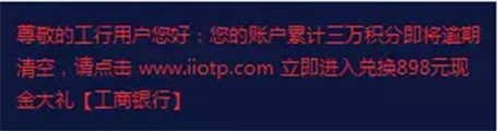 近期,厦门市反诈骗中心接报多起通过冒充工商银行热线95588号码,以工行信用卡积分可按比例兑换现金或者银行身份信息验证为由给受害人发送诈骗短信,短信内含有“www.iiotp.com”的钓鱼网站,受害人访问钓鱼网站后输入个人的银行账户信息以及验证码信息,银行卡里的钱会被迅速转走。此类诈骗手段由于受害人收到的短信发送号码为工商银行客服热线95588,极具迷惑性。