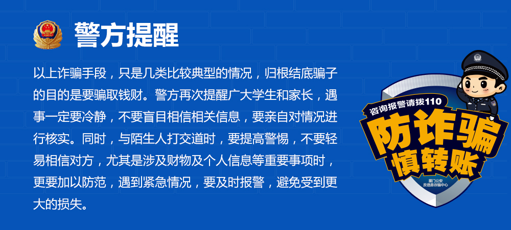 为了让更多家长或学子不受此类诈骗信息蒙骗,公安机关发布开学季防范电信诈骗预警。