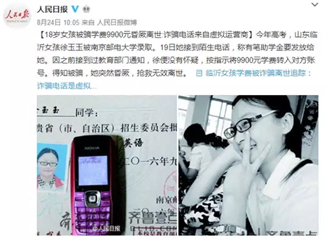 调查发现,同一时期,接到类似诈骗电话的学生并非徐玉玉一人!与徐玉玉同一乡镇的校友也险遭诈骗;而在临沂市河东区的一个村庄,一名学生被骗走6800元学费!徐玉玉的多位同学表示,他们和家人都曾接到过推销或诈骗电话。
