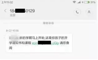 “新的学期马上开始,这是你孩子的开学通知书和课程……请您查阅”。近日这样一条骗子冒充“学校”发送的含钓鱼链接的“开学通知书和课程”的诈骗短信,正在悄悄攻击学生家长用户的手机。