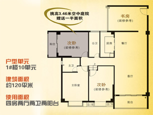 户型特点:格局方正,全明设计,南北通透,客厅与凸窗主卧全部朝南,增加空间使用率近30%。户户带超大入户花园、独享挑高3.46米空中庭院并赠送多功能阳光书房。